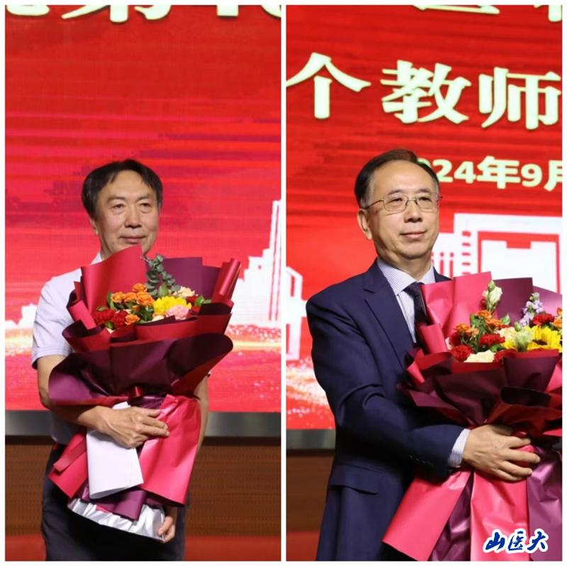 曹济民教授、赵长青教授作为躬耕教坛40年教师代表分享了40多年的教学科研医疗经历,他们共同见证了学校新时代取得的丰硕成果,彰显了山医人躬耕教坛,传承教育家精神的担当。