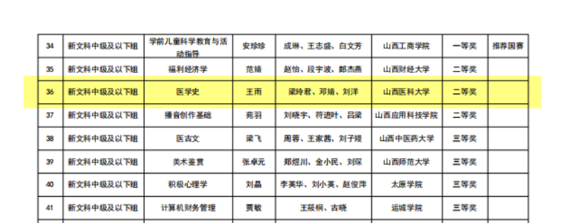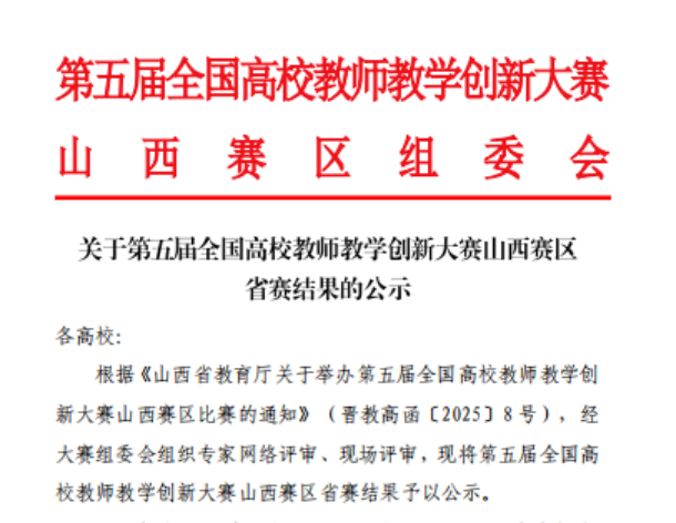 近日,由山西省教育厅主办的第五届全国高校教师教学创新大赛山西赛区比赛圆满落幕。我院王雨老师作为主讲教师,与梁玲君、邓婧、刘洋三位团队教师共同打造的《医学史》课程,在新文科中级及以下组激烈角逐中脱颖而出,荣获省赛二等奖。