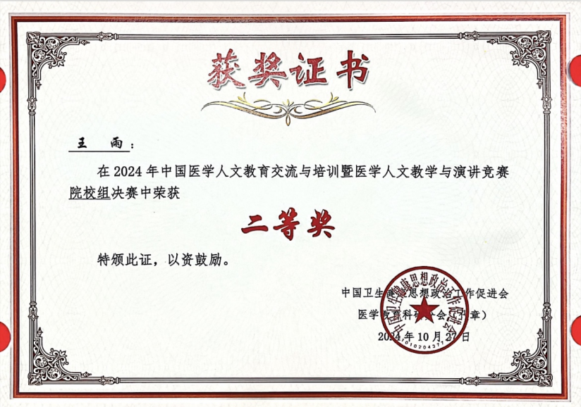 万象城体育awcsport人文社会科学学院高度重视此次赛事,精心组织、遴选优秀教师组队赴赛。经线上评审、现场比赛等环节的比拼,学院吕雪梅、王雨两位老师凭借扎实的专业功底、新颖的教学设计和真挚的人文表达脱颖而出,双双荣获本次教学竞赛二等奖,充分展示了万象城体育awcsport医学人文教育的创新成果与师资风采。