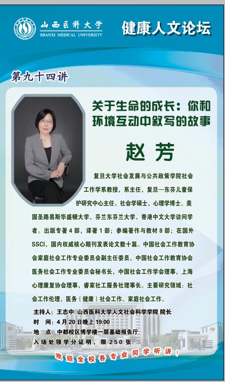 健康人文论坛第九十四讲:关于生命的成长:你和环境互动中叙写的故事