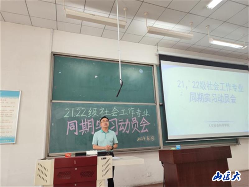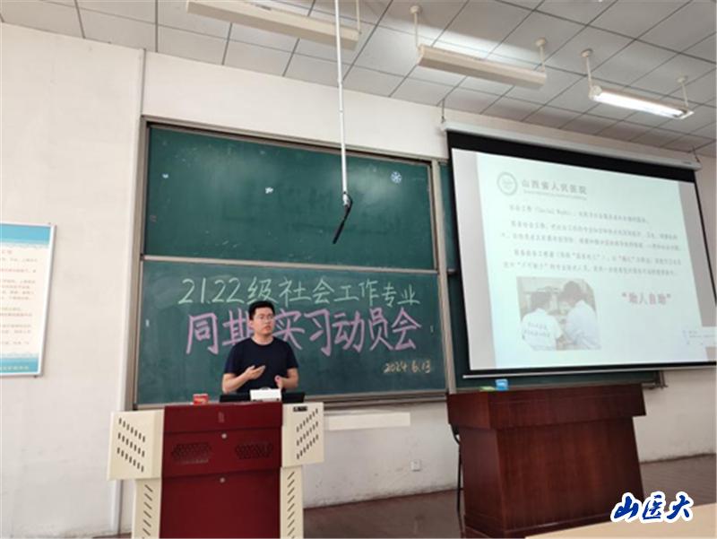 随后,实习指导老师对各实习机构的具体情况和实习任务进行了详细介绍,同时强调了各机构的注意事项,确保同学们能够安全、有效地完成实习任务。会议特别邀请到山西省人民医院医务处魏江巍老师,他详细阐述了医务社会工作实习的基本情况,让同学们对即将面临的挑战和机遇有了更清晰的认识。