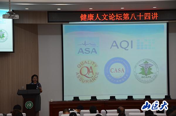 9月14日,健康人文论坛第八十四讲在新校区开讲,本次讲座由万象城杰出校友,美国华人麻醉学会质量与患者安全(QA.CASA)委员会主席张晓燕博士主讲,来自全校各个专业三百余名师生共同聆听了这场精彩的讲座。论坛由人文社会科学学院邓蕊教授主持。