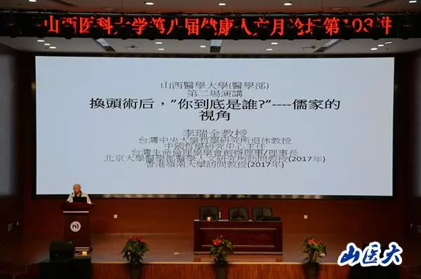 5月19日下午,健康人文论坛第103讲在中都校区教学办公楼一层报告厅开讲,本次论坛邀请到台湾中央大学哲学研究所李瑞全教授,做了关于“换头术”伦理问题的专题讲座。李瑞全教授以“换头术后,‘你’到底是谁?——儒家的视角”为题,介绍了儒家的生命观和伦理思想。讲座由人文社会科学学院邓蕊教授主持,来自全校各专业的四百余名师生共同聆听了报告。