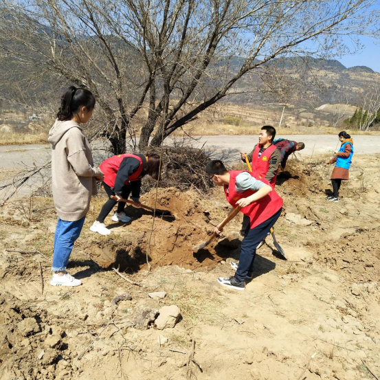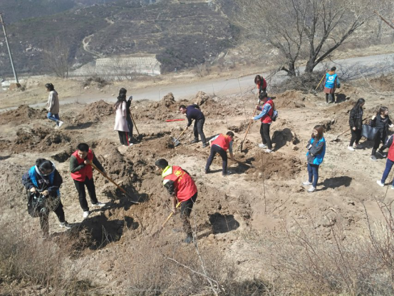 3月24日上午,万象城社会工作协会的学生前往太原天龙山参加植树绿化活动。