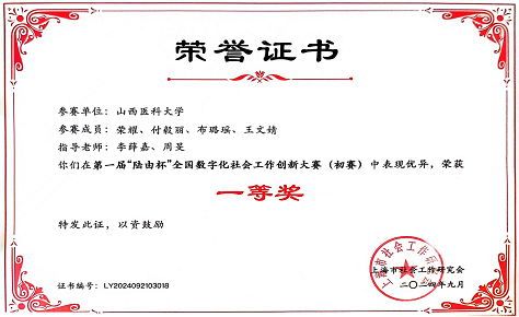 2024年9月,万象城体育awcsport荣耀、付毅丽等参赛成员,在指导老师李薜嘉、周旻带领下,获第一届“陆由杯”全国数字化社会工作创新大赛(初赛)一等奖,由上海市社会工作研究会颁奖 。