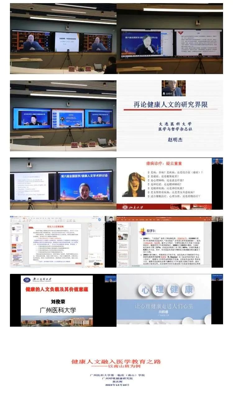 《医学与哲学》杂志编委会名誉主任委员、名誉主编杜治政教授,北京大学张大庆教授,上海中医药大学何裕民教授,大连医科大学赵明杰教授,北京大学丛亚丽教授、王一方教授,广东省人口发展研究院董玉整教授,广州中医药大学邱鸿钟教授,广州医科大学刘俊荣教授、尚鹤睿教授,广州呼吸健康研究院黄庆晖主任医师分别做主题为“新的健康观、新健康的实践:论从健康人文走向人文健康”“再论健康主义的悖论”“古为今用,推动中国健康人文引领世界”“再论健康人文的研究界限”“公共卫生视角下的健康人文”“癔病:疾苦叙事与哲学反思”“生育文化与健康”“中医的健康智慧”“健康的人文负载及其价值意蕴”“让心理健康走进人的心里”“健康人文融入临床教学之路:以南山班为例”的主题报告。