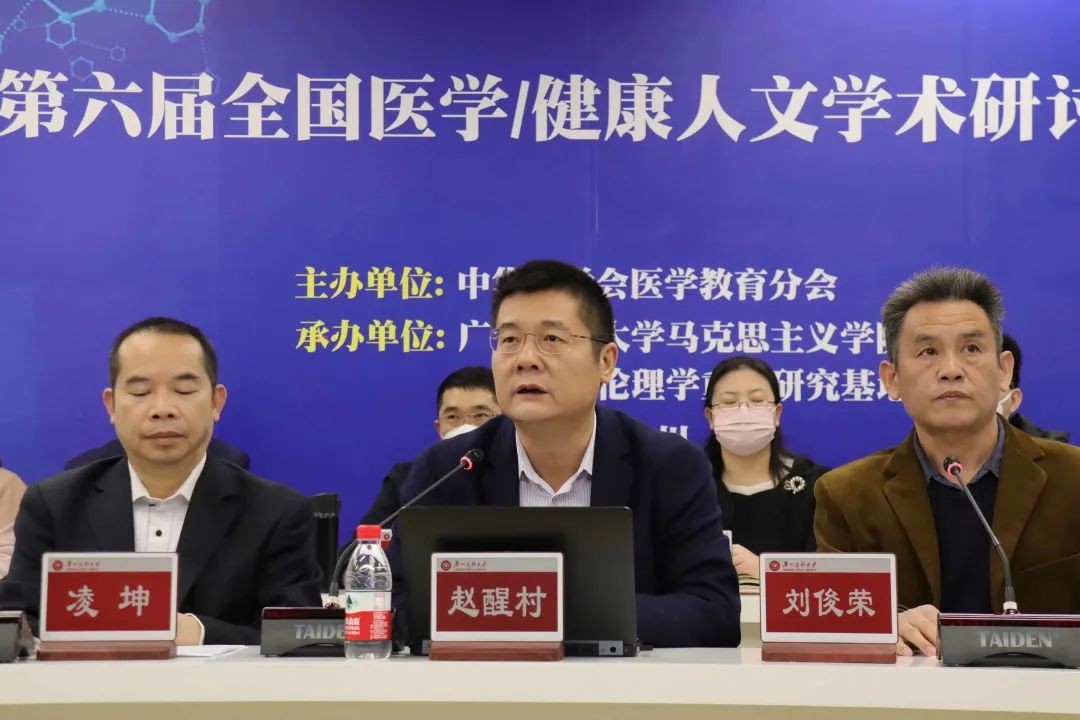2022年12月10日,第六届全国医学/健康人文学术研讨会在广州医科大学番禺校区举行。此次会议由中华医学会医学教育分会主办,广州医科大学马克思主义学院、广州医学伦理学重点研究基地联合承办。大会紧扣“医学/健康人文”主题,围绕共研、共创、共享前沿健康人文的新理念、新动态、新方法,探讨医学/健康人文的发展趋势。大会以线上线下结合的方式举行,来自全国医疗卫生行业和医学院校的三百多位专家学者聚首“云端”参会。