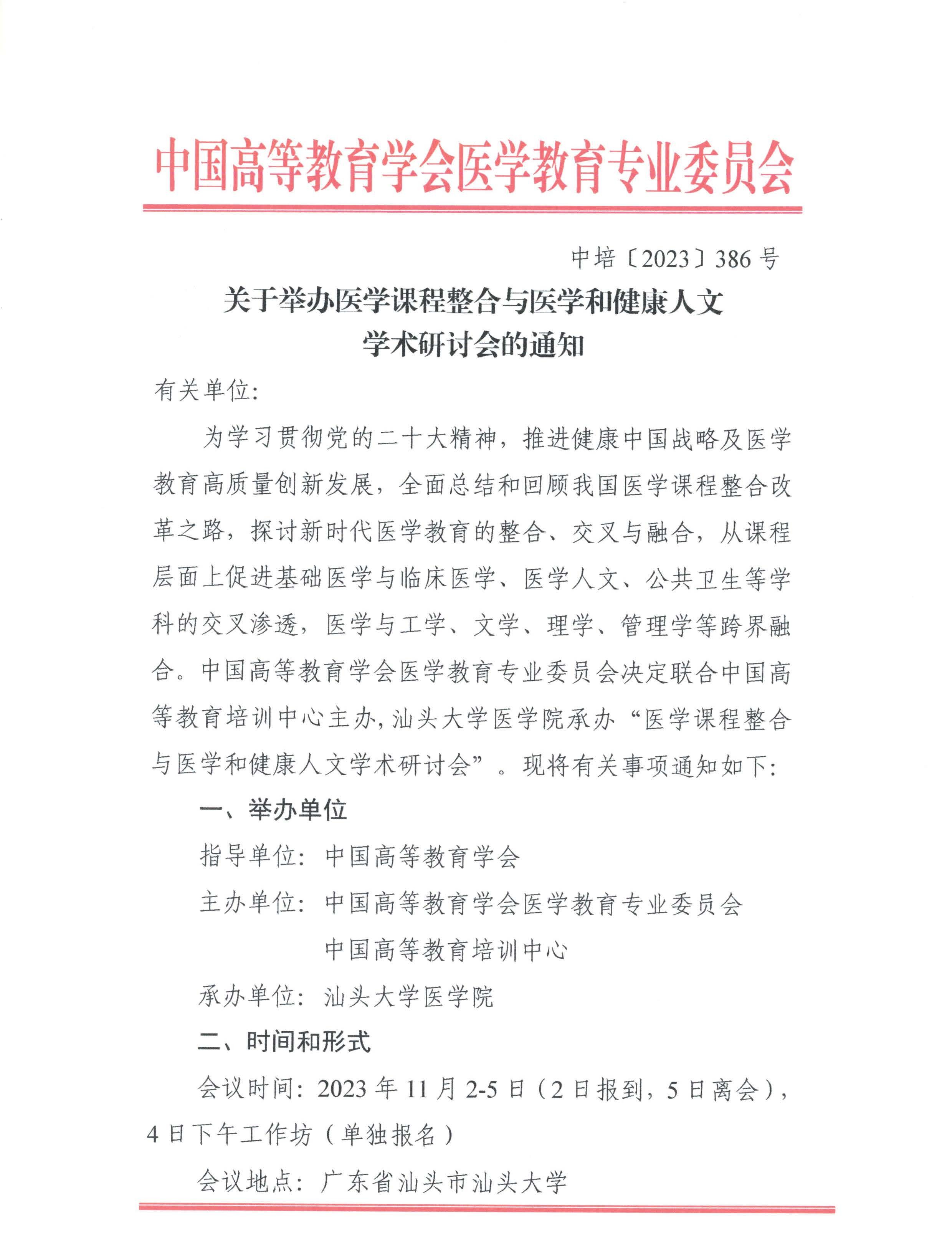 关于举办医学课程整合与医学和健康人文学术研讨会的通知