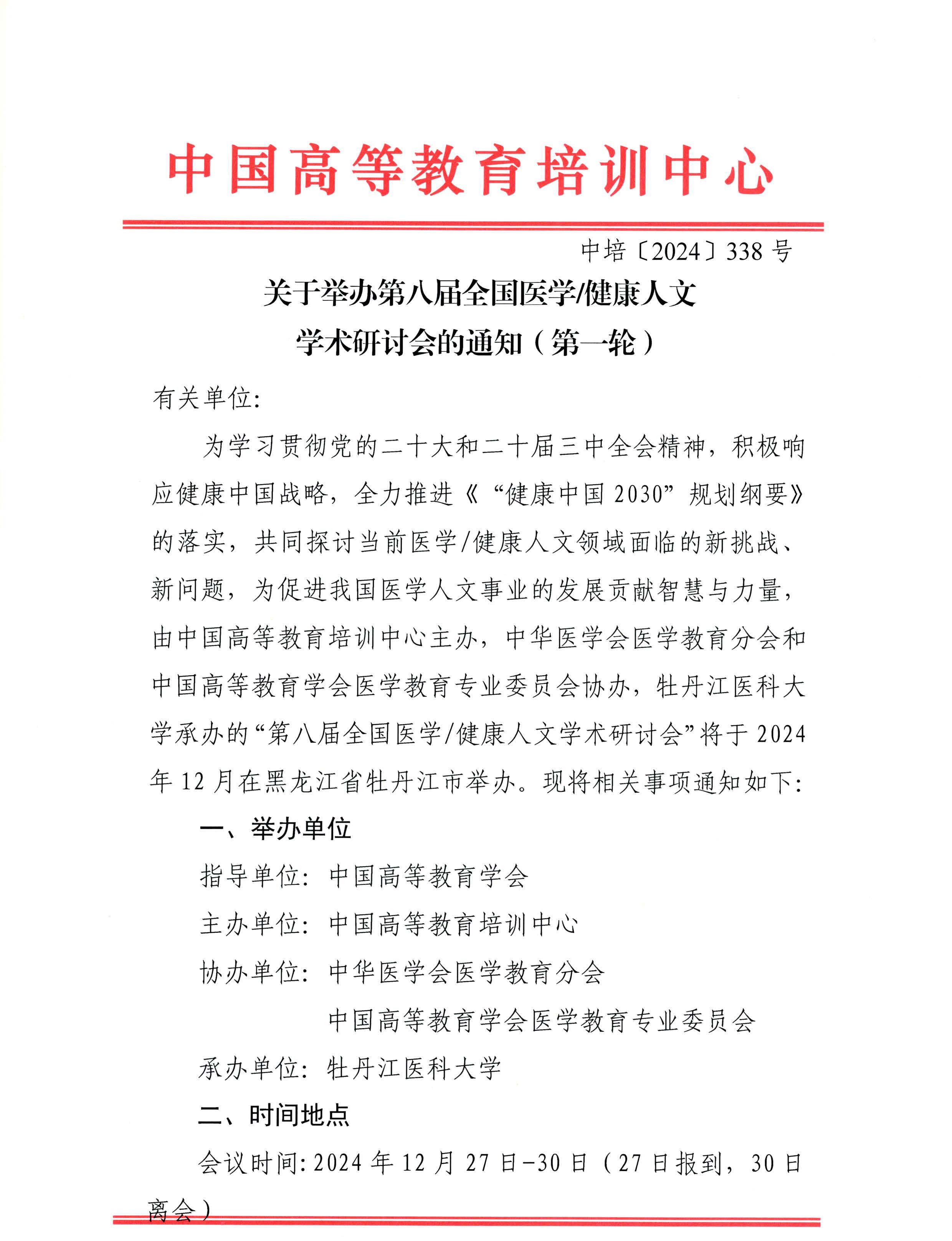 关于举办第八届全国医学/健康人文学术研讨会的通知(第一轮)