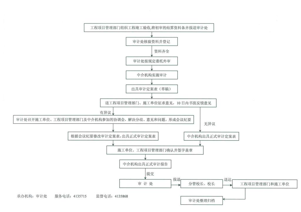 基建、修缮、装潢工程项目竣工结算委托审计工作流程图