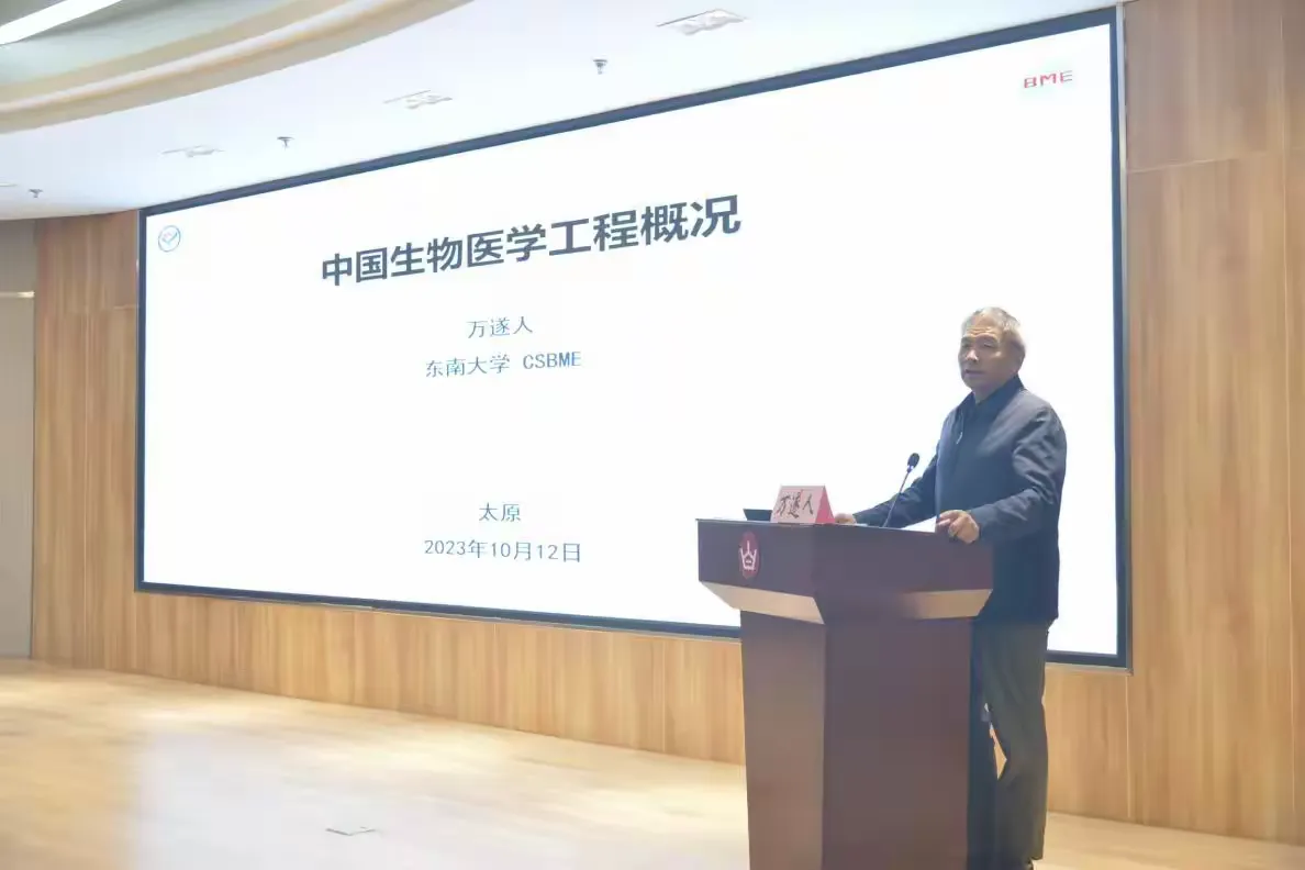 10月12日,生物医学工程学系学术讲座在山西白求恩医院举行。中国生物医学工程学会副理事长、教育部高等学校生物医学工程专业教指委主任委员、东南大学生物医学工程学院万遂人教授,中国生物医学工程学会理事、教育部高等学校生物医学工程教学指导委员会委员、深圳大学医学院生物医学工程教学实验中心汪天富教授出席并做精彩报告,深圳大学董磊教授、广东医科大学何青教授、太原理工大学黄棣教授、魏延副教授等嘉宾列席本次活动,山西白求恩医院设备管理维护中心全体工作人员、生物医学工程学系全体教师、2021级全体学生共同参与。 大会由山西白求恩医院设备管理维护中心李建生主任主持。