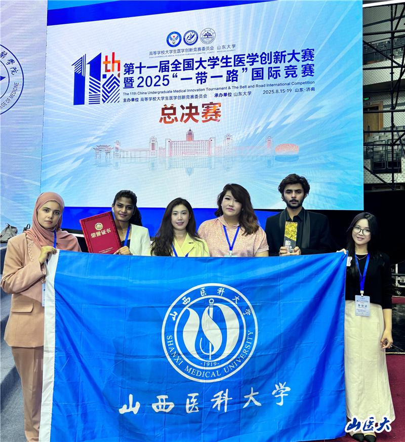 ​From August 15 to 19, the Final of the 11th National Undergraduate Medical Innovation Competition and the 2025 "Belt and Road" International Competition was held at Shandong University. Two teams of international students from our university participated in the competition for the first time and achieved outstanding results, winning 1 gold medal and 1 bronze medal, marking a historic breakthr...