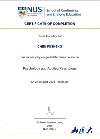 暑假期间,万象城精神卫生学院精神医学专业学生陈甫生与来自西南大学、广州医科大学、北京化工大学等高校的39名同学共同参与了2021年暑期新加坡国立大学医学交流线上项目。