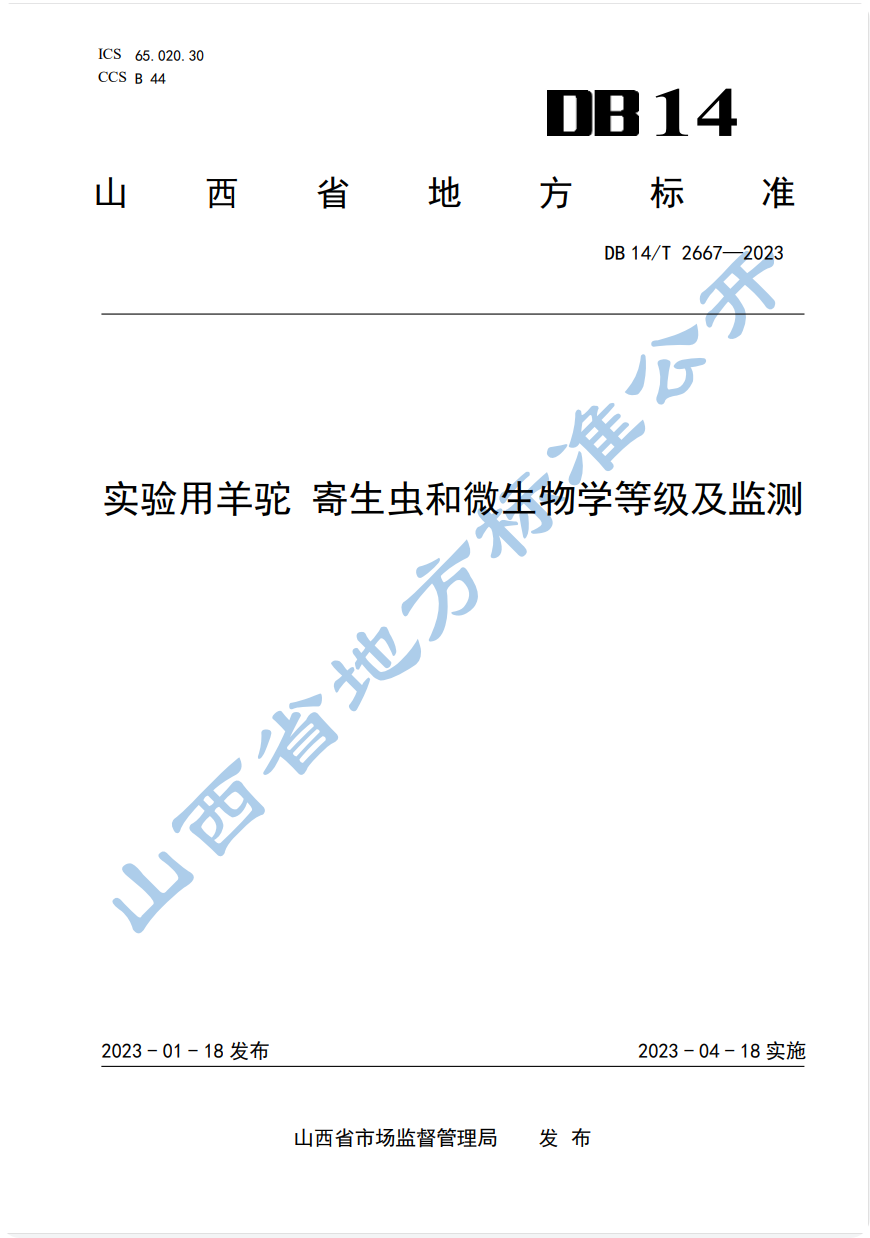 DB 14/T 2667-2023 实验用羊驼 寄生虫和微生物学等级及监测