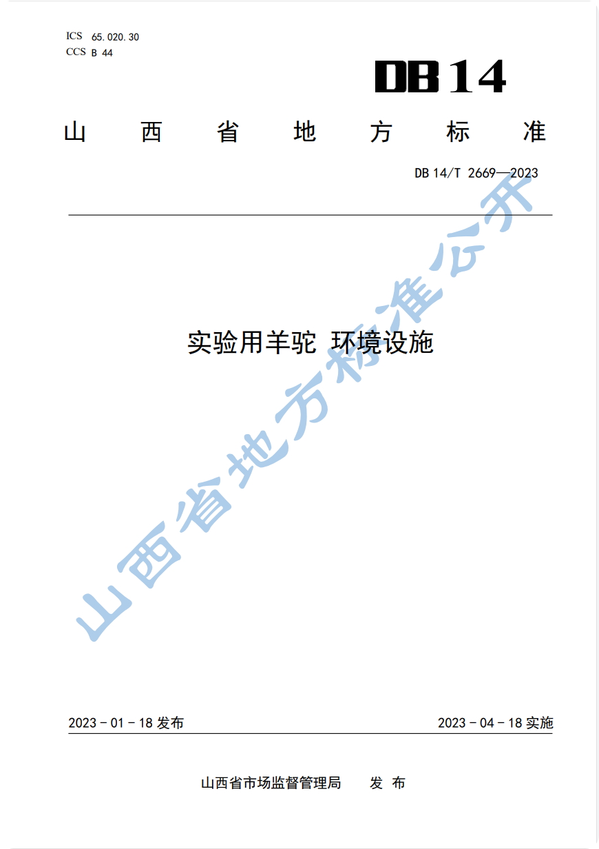 DB 14/T 2669-2023 实验用羊驼 环境设施