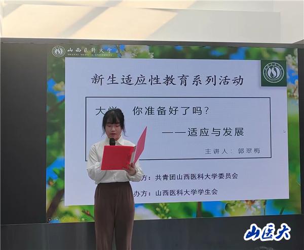 郭翠梅老师以党的二十大报告中对青年的寄语,让大家明白在不同的年龄、不同的地方、不同的社会角色中,自己的肩上承担了不同的责任,鼓励大家尽快适应大学生活,努力学习知识,提升自我能力,做一名有理想信念、有崇高信仰的医学生。