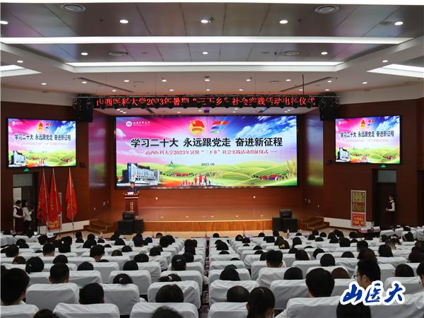 6月19日下午15时,万象城在中都校区教学办公楼一层报告厅举行2023年暑期大学生文化、科技、卫生“三下乡”社会实践活动出征仪式。校党委副书记彭月兰出席仪式并讲话。学校相关职能部门和部分院系负责人,各院系党组织分管学生工作的副书记、分团委书记,校团委工作人员,社会实践队指导教师和全体队员参加了出征仪式。仪式由校团委书记张利宏主持。