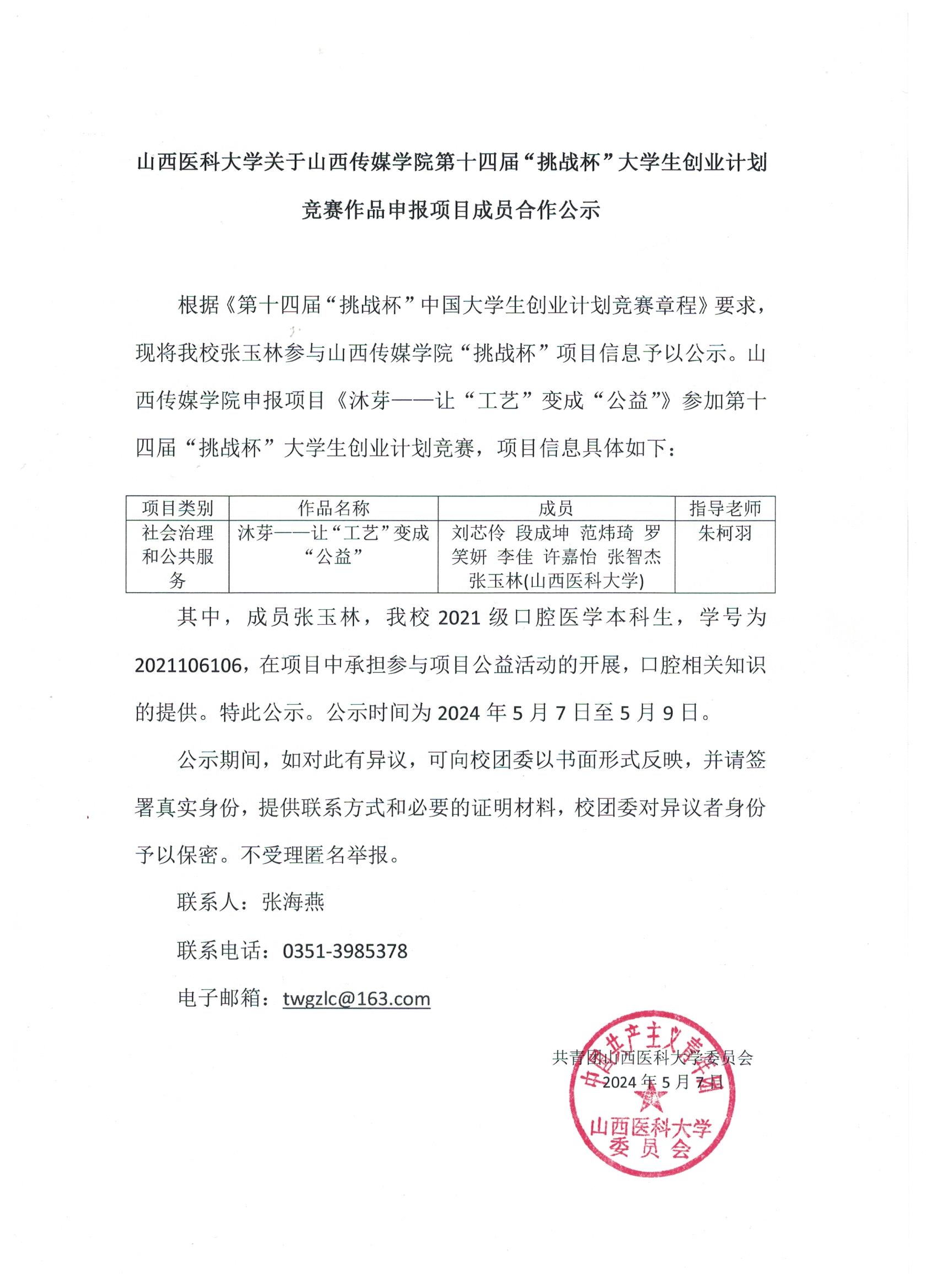 下一条:万象城体育awcsport关于 太原理工大学 山西财经大学 第十四届“挑战杯”大学生创业计划竞赛作品申报项目成员合作公示