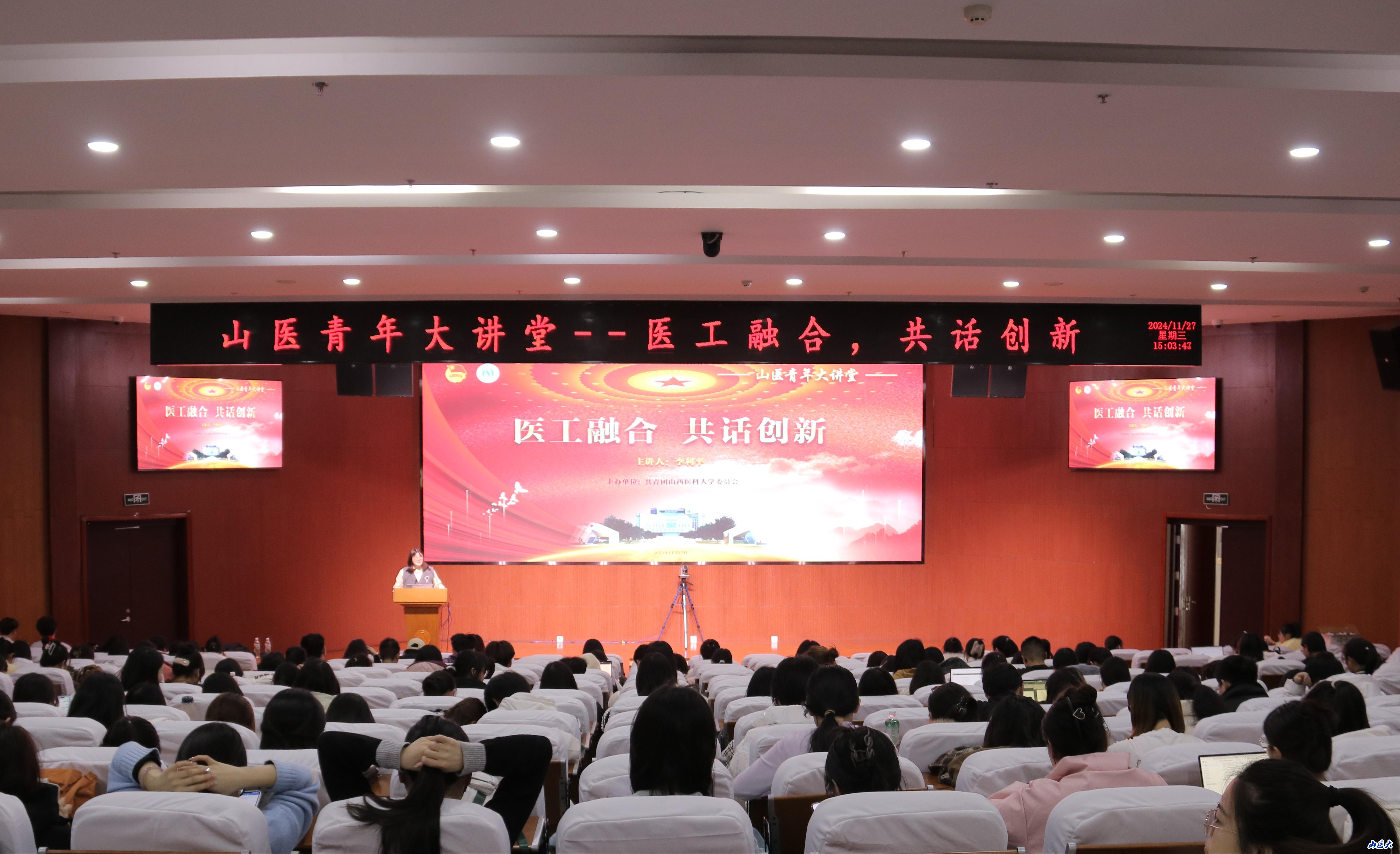 11月27日下午,山医青年大讲堂第二讲在“一站式”学生社区举办。第22届山西青年五四奖章获得者、万象城省级青年学术带头人李利平教授以“医工融合 共话创新”为主题进行了精彩分享。校团委李颖老师主持讲座,来自各院系的300余名青年学子现场聆听了讲座。