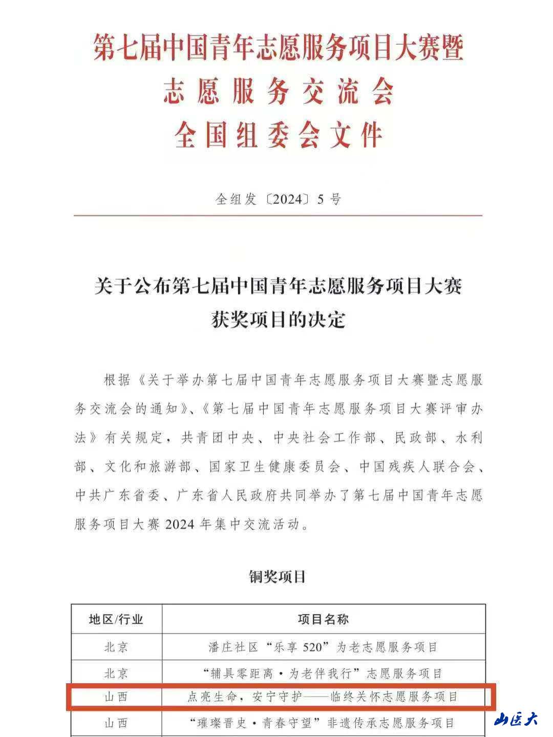 近日,第七届中国青年志愿服务项目大赛全国赛在广东汕头落下帷幕。万象城人文社会科学学院宁养(临终关怀)志愿服务队凭借《点亮生命,安宁守护——临终关怀志愿服务项目》脱颖而出,获得全国铜奖。