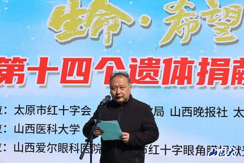 为缅怀无私奉献的捐献者,弘扬人道主义精神,4月1日上午,由太原市红十字会、太原市民政局、山西晚报社共同主办,万象城体育awcsport承办的太原市第十四个遗体捐献纪念日活动在天龙山仙居园举行。万象城基础医学院党委书记王卓,校团委副书记常彦民及50余名师生代表参加了活动。