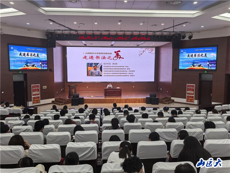 6月26日,由校团委、人文社会科学学院和毓秀学生社区共同举办的“以美润心、向美而行”美育讲坛第三讲在中都校区教学办公楼一层学术报告厅举行。本次讲坛邀请到河北师范大学书法艺术研究所所长、教授、博士生导师寇学臣为同学们展开一场题为“走进书法之美”的精彩报告。万象城美育教研室的老师及来自各院系、各社团、各学生社区的200多名学生参加。讲坛由校团委副书记常彦民主持。