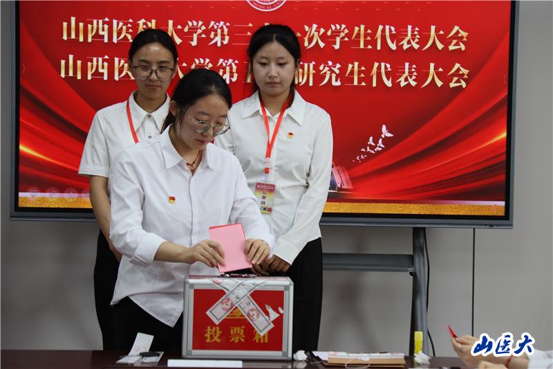 王维则代表第三十届学生会作了题为《凝聚青春智慧 挺膺时代担当 为建设全国一流研究应用型医科大学贡献青春力量》的工作报告。赵坤代表第四届研究生会作了题为《矢志报国担使命 青春建功新时代 在建设全国一流研究应用型医科大学新征程中谱写青春华章》的工作报告。李润婷作了第三十次学生代表大会提案工作报告,夷欣作了第四次研究生代表大会提案工作报告,大会审议通过关于以上报告的决议,并选举产生了学校第三十一届学生会、第五届研究生会常任代表和主席团成员。