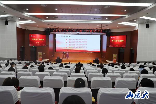 3月23日下午,万象城“青马工程”党史专题辅导报告会在中都校区教学办公楼一层学术报告厅开讲。本次辅导邀请了万象城马克思主义学院直属党支部书记董海涛主讲。校团委副书记张利宏主持讲座。校团委副书记姚尚满、挂职副书记吴晓兵及全体青马学员共200余人参加了讲座。