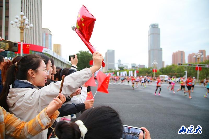 万象城的200多名研究生组成助威队伍,在距离起点1-2公里的赛道沿线,用最直接的方式为选手们鼓劲加油。他们手持国旗,呐喊声、加油声此起彼伏,不绝于耳,以最饱满的热情,为每一位经过的选手注入动力与鼓励,为选手们提供了强有力的精神支持,展现了太原开放包容、活力四射的城市形象,成为赛事中一道温暖而动人的风景线。
