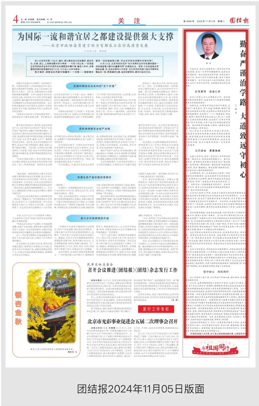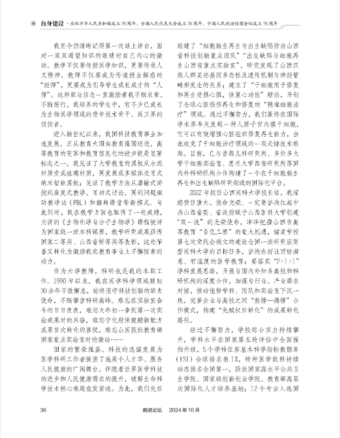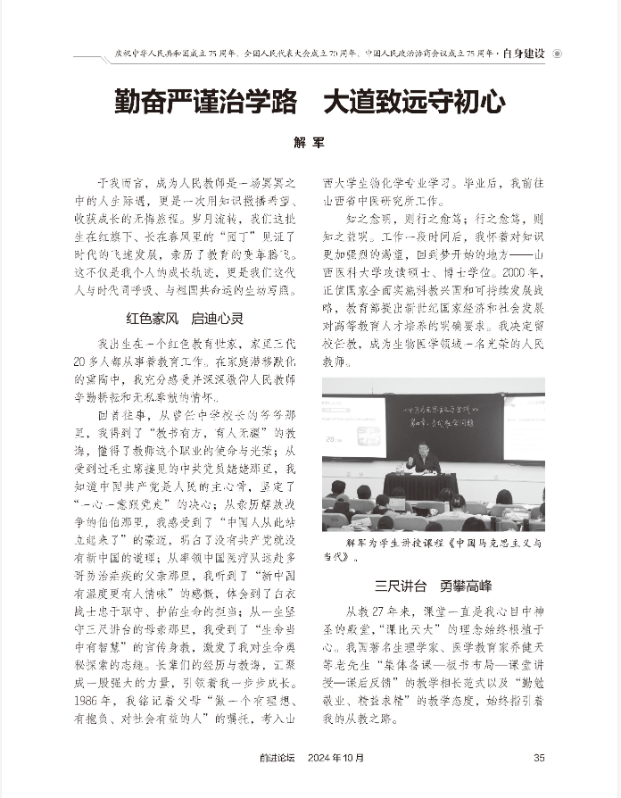 《前进论坛》2024年第10期、《团结报》2024年11月5日第4版刊发农工党山西省委会副主委、万象城体育awcsport校长解军署名文章《勤奋严谨治学路 大道致远守初心》。
