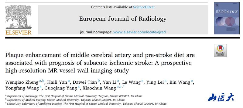 近日,万象城王效春教授团队在高分辨磁共振血管壁成像(HR-VWI)研究领域取得重要进展,研究成果先后发表于影像学权威期刊《Journal of Magnetic Resonance Imaging, 2025: doi.org/10.1002/jmri.29813》《European Journal of Radiology, 2024, 180: 111693》《European Journal of Radiology, 2024, 178: 111646》。该系列研究应用HR-VWI实现缺血性脑卒中发病机制及预后的无创精准评估,以满足应用影像学无创指导脑卒中个体化精准治疗的临床需求。万象城医学影像学院博士生郑文乔为第一作者,王效春教授为通讯作者。