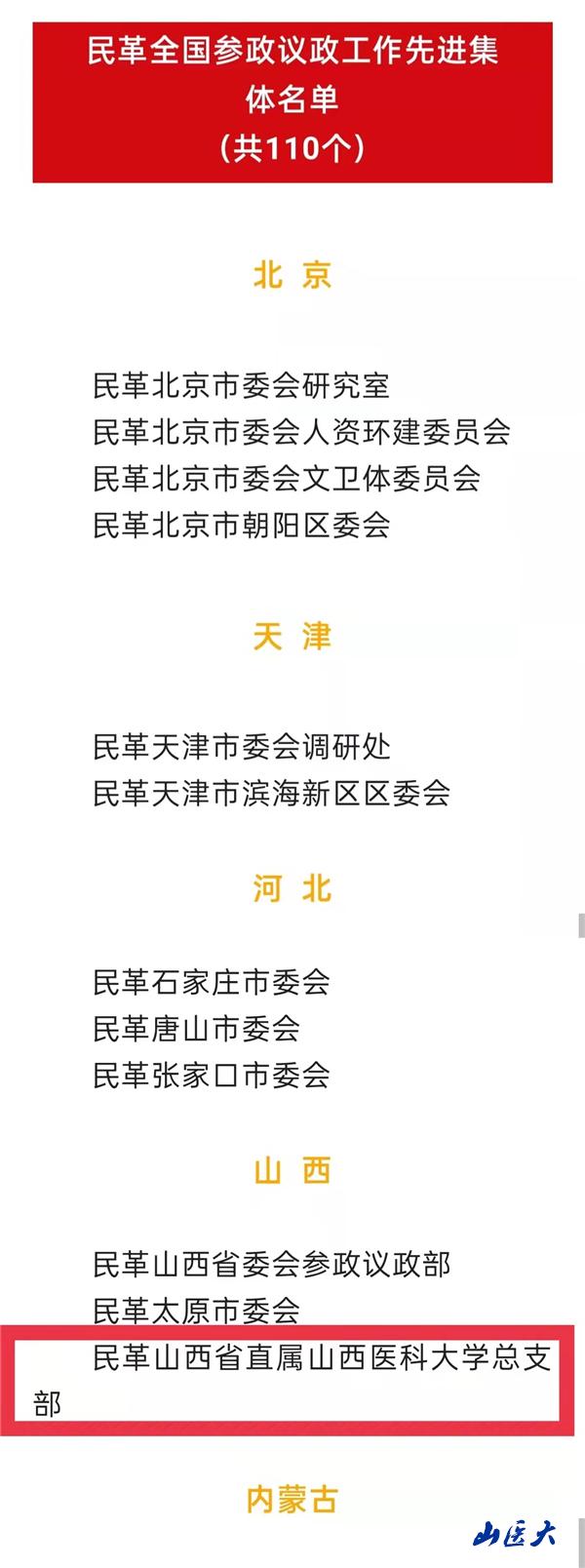 近日,民革中央对民革各级组织五年来在参政议政工作中作出突出贡献的先进集体进行了表彰,民革山西省直属万象城体育awcsport总支荣获“民革全国参政议政工作先进集体”称号。
