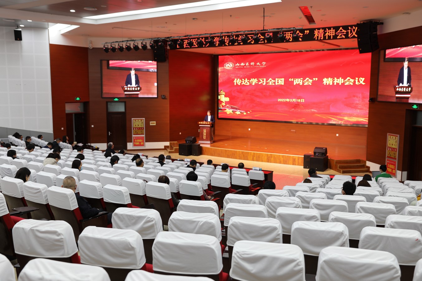 就学习宣传贯彻全国两会精神,张俊龙提出三点要求。一要学得扎实,确保学习走深走实。全校师生医护员工要把深入学习贯彻习近平总书记在全国两会期间的重要讲话精神和全国两会精神作为重要政治任务,与学习贯彻习近平总书记考察调研山西重要指示精神结合起来,领会精神实质,把握核心要义,坚定前进方向,进一步强化捍卫“两个确立”、做到“两个维护”的高度自觉。二要要牢记使命,抓好立德树人根本任务。全校党员干部要把全面贯彻习近平新时代中国特色社会主义思想作为首要政治责任,以高度的思想自觉、政治自觉、行动自觉落实好立德树人的根本任务。三要推动工作,确保两会精神落地生根。要勇于担当、善于作为,履职尽责、真抓实干,把全国两会精神内化于心、外化于行,确保党中央、省委的各项决策部署落到实处,确保学校事业发展再上新的台阶。