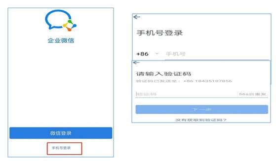 1、应用商店搜索下载企业微信,选择手机号登录,输入手机号码, 获取验证码,点击下一步,点击进入万象城体育awcsport企业即可;