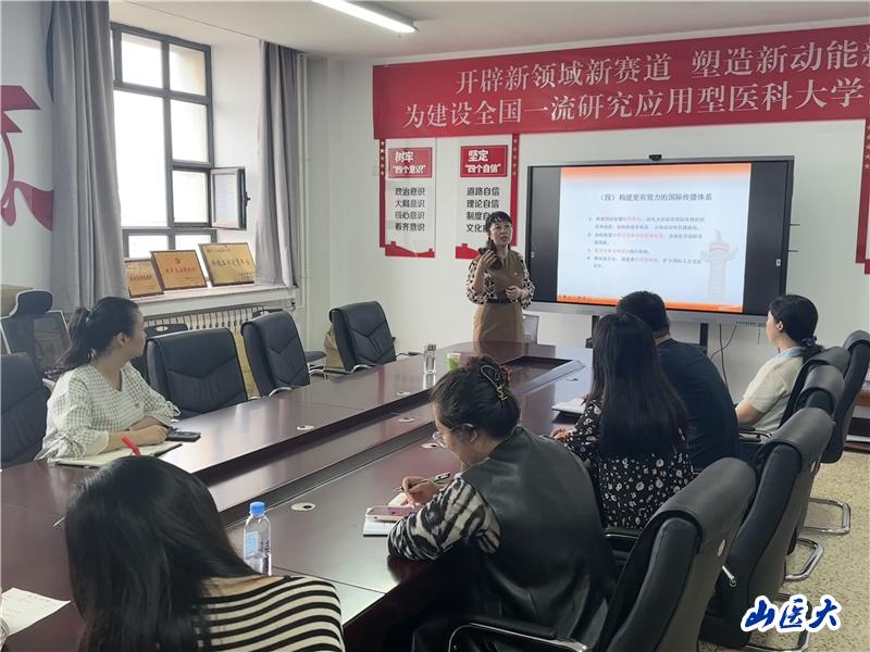 为持续深入学习贯彻党的二十届三中全会精神,9月20日上午,国际教育学院邀请马克思主义学院副院长尹俊芳教授为学院全体老师进行党的二十届三中全会精神专题宣讲,会议由国际教育学院党总支书记郭亚斌主持。