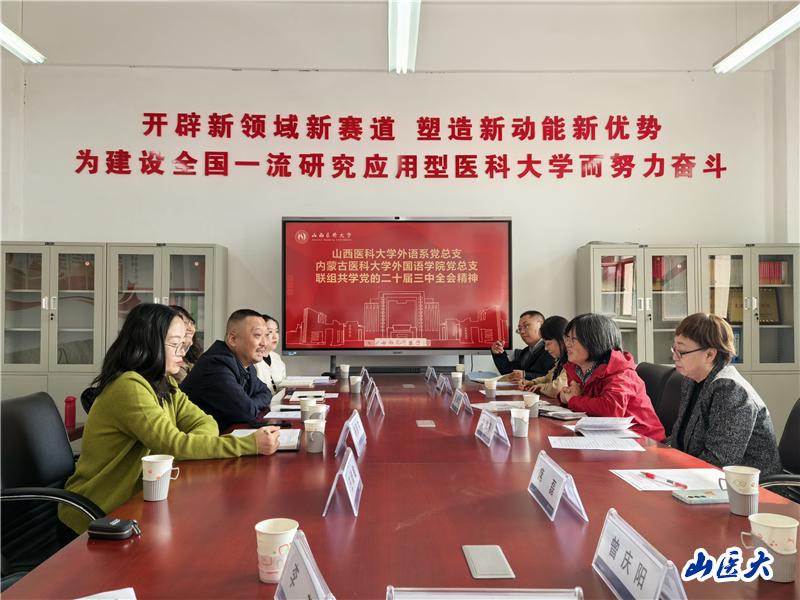 外语系党总支与内蒙古医科大学外国语学院党总支联组共学党的二十届三中全会精神
