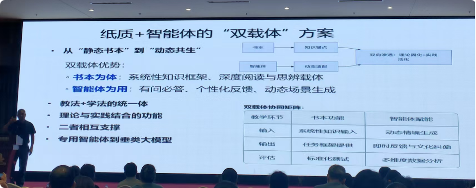 广东外语外贸大学的刘建达教授做了题为“人工智能与外语教师发展”的讲座,从ChatGPT等人工智能技术对外语教育的冲击切入,系统阐释了AI时代教师角色转型的必然性。他指出,当前外语教育正经历范式转变,传统以知识传授为核心的教学模式已无法适应智能化教育生态。通过对比AI与人类教师在作文批改、翻译实践等场景中的效能表现,刘教授强调教师不会被AI取代,但必须学会与AI协同共生。