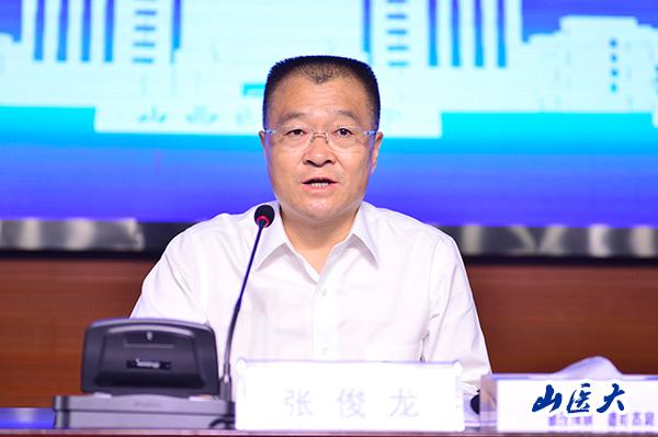 校党委书记张俊龙在会上讲话。他指出,今天的会议,是在学校百年华诞前夕,在贯彻学校第六次党代会精神、推进高水平研究教学型医科大学建设的关键时期,召开的一次重要的会议,对于进一步统一全校师生医护员工思想认识,准确把握新形势下学科建设的目标任务,提升学科与学位点建设水平,加快推进高水平研究型教学型医科大学建设,都具有十分重要的意义。