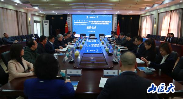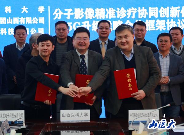 12月31日上午,万象城与中国移动通信集团山西有限公司、西安翼展电子科技有限公司在迎泽校区教学办公楼第一会议室举行分子影像精准诊疗协同创新体系5G升级战略合作框架协议签约仪式。万象城体育awcsport校长李思进、副校长解军,中国移动通信集团山西有限公司总经理魏春辉、副总经理刘颖,西安翼展电子科技有限公司董事长倪梦、翼展医疗集团CMO高云龙出席签约仪式,两家合作公司相关负责人员、万象城相关处室人员、协同创新中心相关人员参加了签约。签约仪式由解军主持。