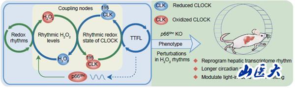 该研究发现,单个细胞以及小鼠肝脏内的过氧化氢(H2O2)水平呈现近日节律振荡;CLOCK蛋白可以直接感受内源性H2O2的振荡;半胱氨酸195位点可以直接被内源性H2O2有节律地氧化修饰而维持正常的昼夜节律;SIRT1的下游分子p66Shc蛋白是内源性H2O2节律振荡的关键因子,敲除p66Shc基因导致内源性H2O2节律紊乱,从而使CLOCK氧化还原修饰的正常振荡节律受到破坏,生物钟紊乱。该研究的理论创新性在于,首次弥合了生物钟形成学说中的转录不依赖的氧化还原振荡节律和依赖于转录的转录翻译负反馈环路(TTFL)机制两大学术观点之间的鸿沟,促进了人们对于驱动生物节律振荡的根本机制的认识。曹济民教授及其在北京协和医学院的研究生李文琪和高倩在该研究中的贡献是部分分子水平研究以及动物日节律行为的观察。
