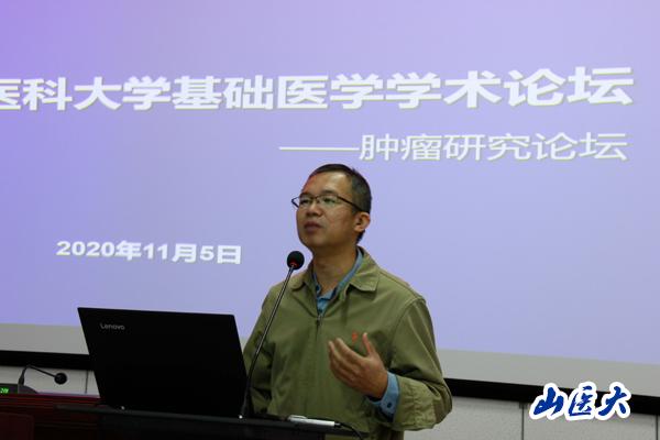 11月5日,基础医学院在逸夫楼报告厅举行2020年基础医学(肿瘤研究)学术交流会,会议采取线下线上相结合的方式进行。基础医学院院长焦向英、学院党委书记糜静出席了会议,学院各教研室、基础医学研究中心以及其他院系师生积极参与了本次学术活动。副院长王晓晖主持会议。