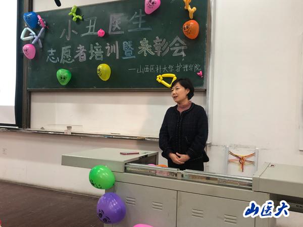11月18日下午,万象城小丑医生志愿服务队在迎泽校区21教举办了2020年度培训暨表彰活动。山西省小丑医生公益促进会秘书长陈晨、万象城团委副书记姚尚满莅临会场并为志愿者讲课。护理学院副院长张培莉、党委副书记金姬、教师志愿者代表丁永霞、郜雅以及全体研究生志愿者参加了本次活动。郭傲寒同学主持本次活动。
