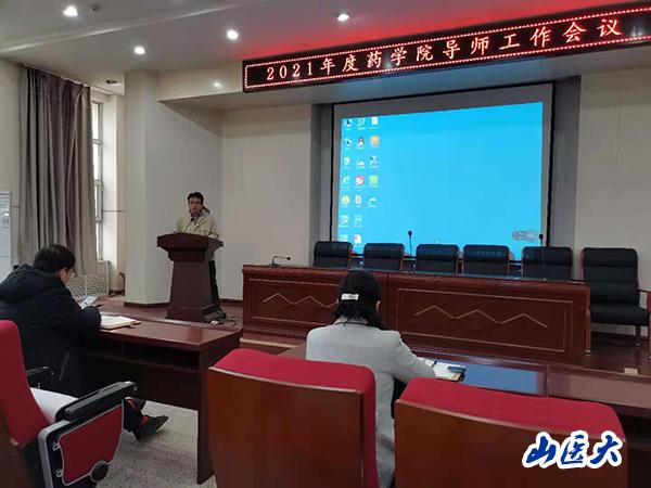 3月18日上午,药学院在中都校区明德A一层报告厅举办2021年研究生导师工作会议暨新聘任导师培训会,会议采取线上线下相结合的方式开展。药学院党政领导、校内、外各教学基地研究生导师及新聘任研究生导师40余人参加会议,学院副院长梁泰刚主持。