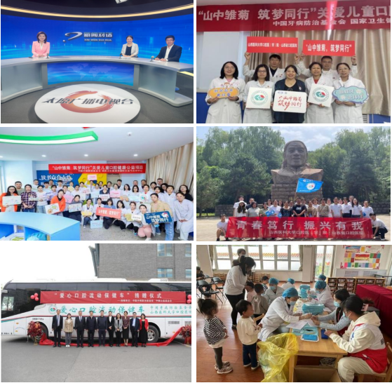 学科坚持以需求为导向,多措并举不断提升社会服务能力和水平。首先,通过各式各样的口腔卫生宣教活动、将服务送至学校课堂、厂矿机关、社区军营和偏远山区,服务辐射覆盖全省11地市、86个项目区县,惠及全生命周期人群500余万人。如“我为群众办实事”等各类活动23场;通过广播、电视、公众号等多方式多渠道,开展“口腔健康惠民众”等36场科普活动;线上“云科普”受益百万人次,从线上到线下,切实履行了社会责任。此外,连续五年参加由国家卫建委和牙病防治基金会联合主办的国家5A级“山中雏菊、筑梦同行”公益慈善项目,为山区儿童进行口腔义诊,在口腔公共卫生服务事业上做出突出贡献,因此受到中国牙病防治基金会嘉奖,赠与价值百万“爱心口腔流动保健车”一辆,为基层群众开展优质暖心的口腔健康服务打通“最后一公里”,开启口腔预防爱心之旅。其次,对适龄儿童进行免费口腔适宜技术的实施,近15年已为50.456万人完成窝沟封闭牙数166.3585万颗;为10多万儿童完成局部用氟。学科牵头开展了山西省第一次口腔健康流行病学调查,对全省16个县(区)25944人进行了口腔健康检查和问卷调查,《山西省第一次口腔健康流行病学调查报告》被山西省卫健委采纳,建立了山西省特色口腔疾病数据库。学科与时俱进的成功构建了我省全生命周期人群口腔公共卫生健康管理平台,该平台将学科承担的国家重大公益科研专项,如全国第四次口腔健康流行病学调查、全国重点人群口腔健康状况监测项目;国家重大公共卫生项目,如儿童口腔疾病综合干预项目、口腔健康助成长项目以及山西省重大公共卫生项目,如山西省儿童及青少年口腔常见病和影响因素监测及综合干预项目、山西省老年人口腔疾病综合干预项目等各级各类项目整理融合,通过电子化录入和智能化处理数据,逐步实现针对全人群口腔健康的监测、预防、治疗、维护和知识普及。下一步,我们期待将全身体检大数据加入其中进行整合分析,探索全身疾病与口腔疾病关系,以实现两者互相预测及防控,为政府提供基线数据,更加精准科学推动我省口腔乃至全身健康管理事业高速发展。助力健康中国建设,为社会主义现代化建设繁荣与发展贡献力量。