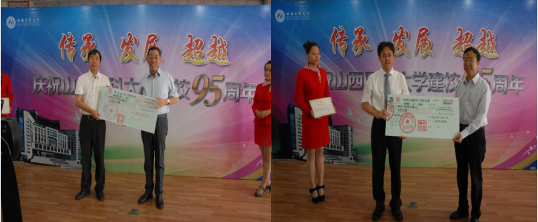 图8 杰出校友程建华(左图)、任武贤(右图)向母校捐赠