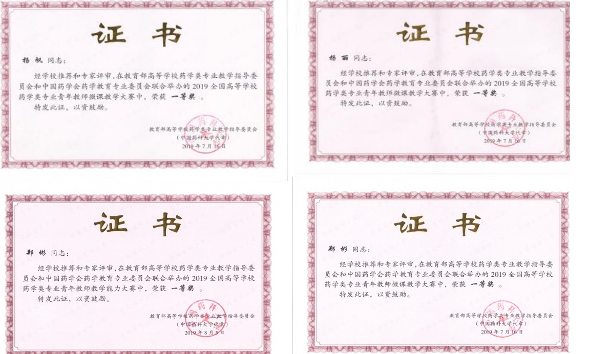 图1 教师在全国药学类专业青年教师教学能力大赛、微课比赛中获奖