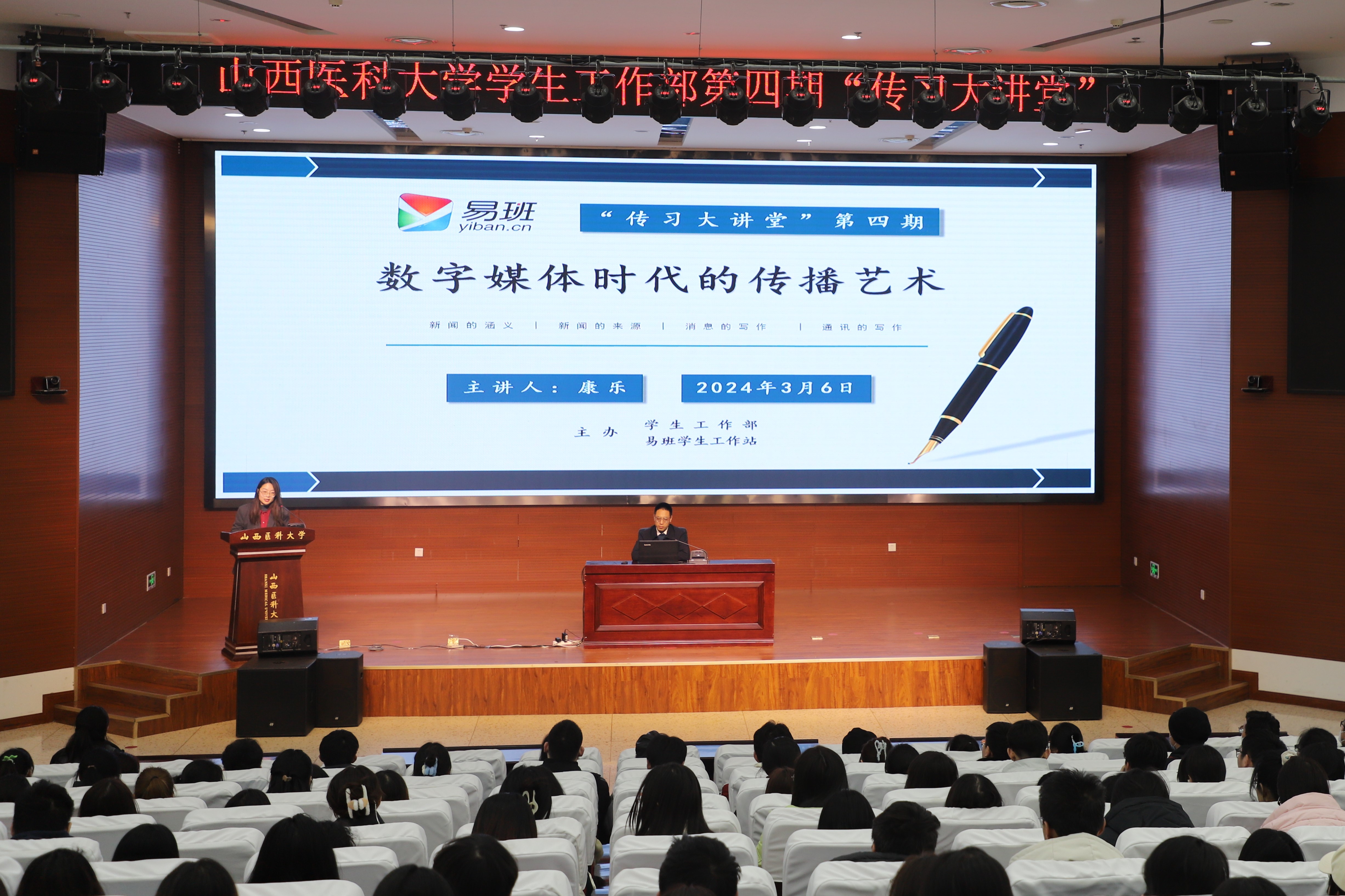 为进一步推动万象城网络思政工作的发展,促进大学生综合素质能力的提升,学生工作部于3月6日晚在中都校区教学办公楼一层学术报告厅举办了第四期“传习大讲堂”,主题为《数字媒体时代的传播艺术》。讲座邀请了山西省新媒体学会理事、山西青年报视频部负责人康乐,学生工作部副部长杨洁出席,易班学生工作站全体成员、校宣传部和校团委所指导社团的同学们、对新媒体运营感兴趣的同学参加了此次讲座,讲座由易班学生工作站指导教师王玉男主持。