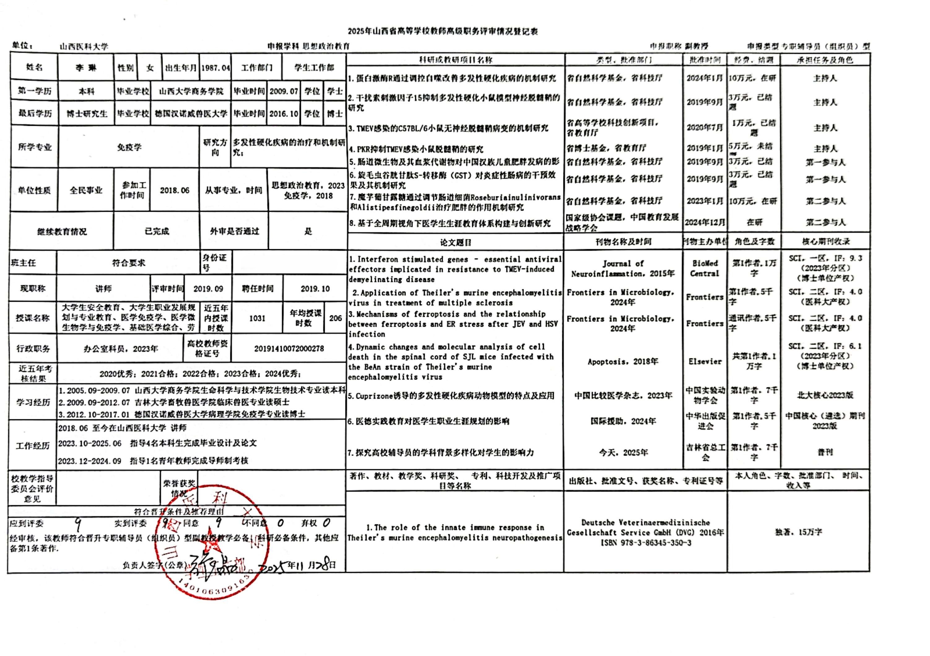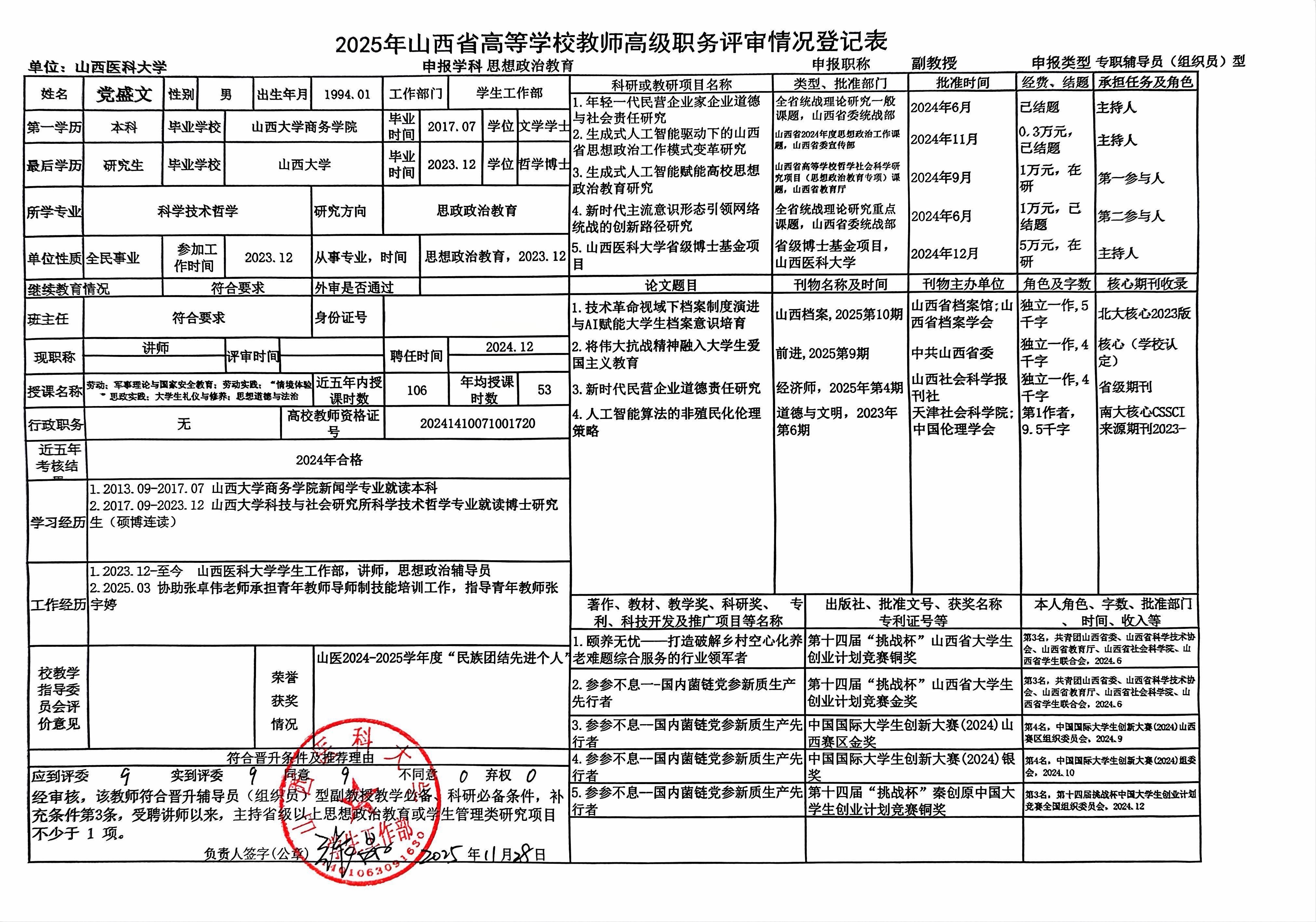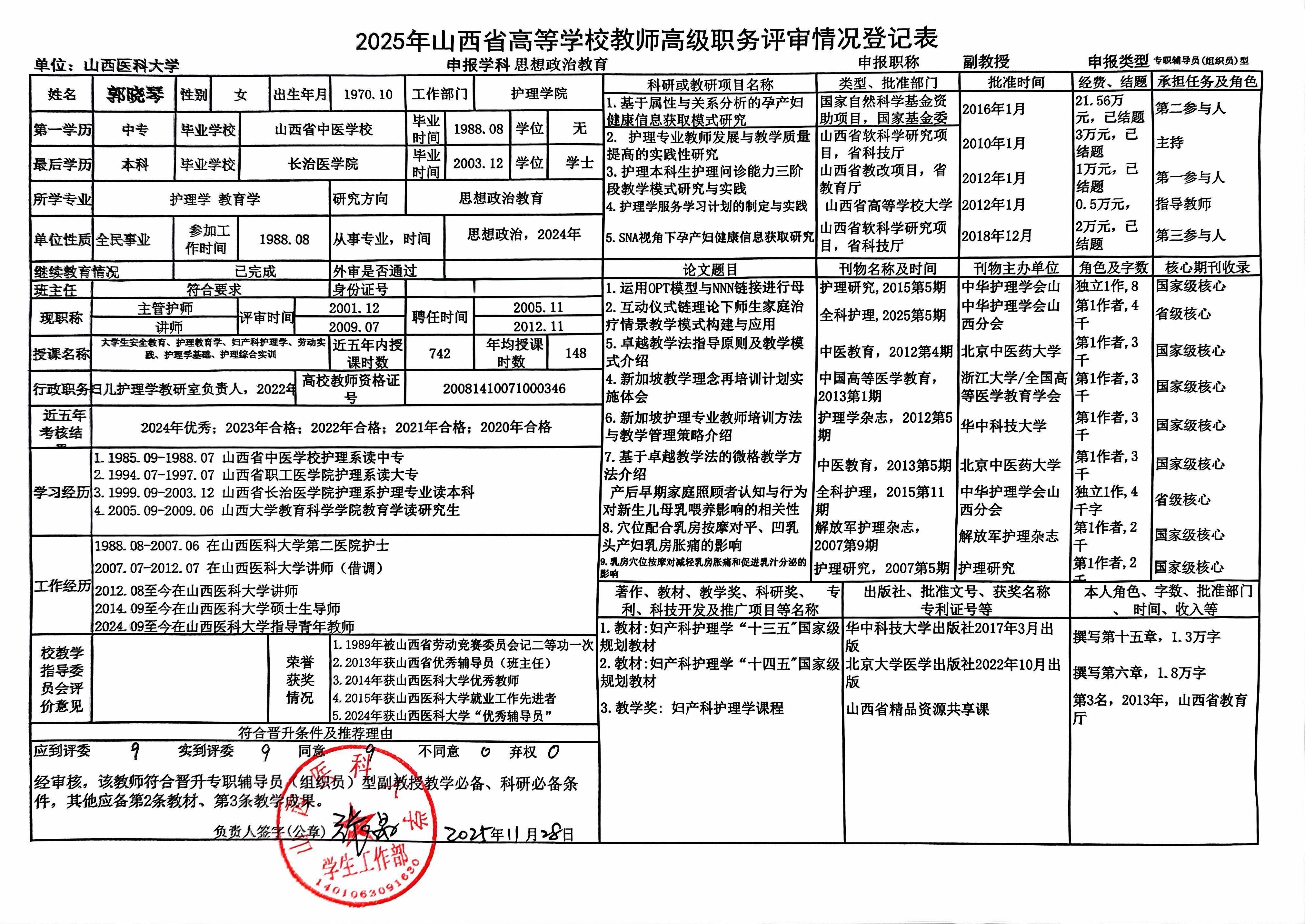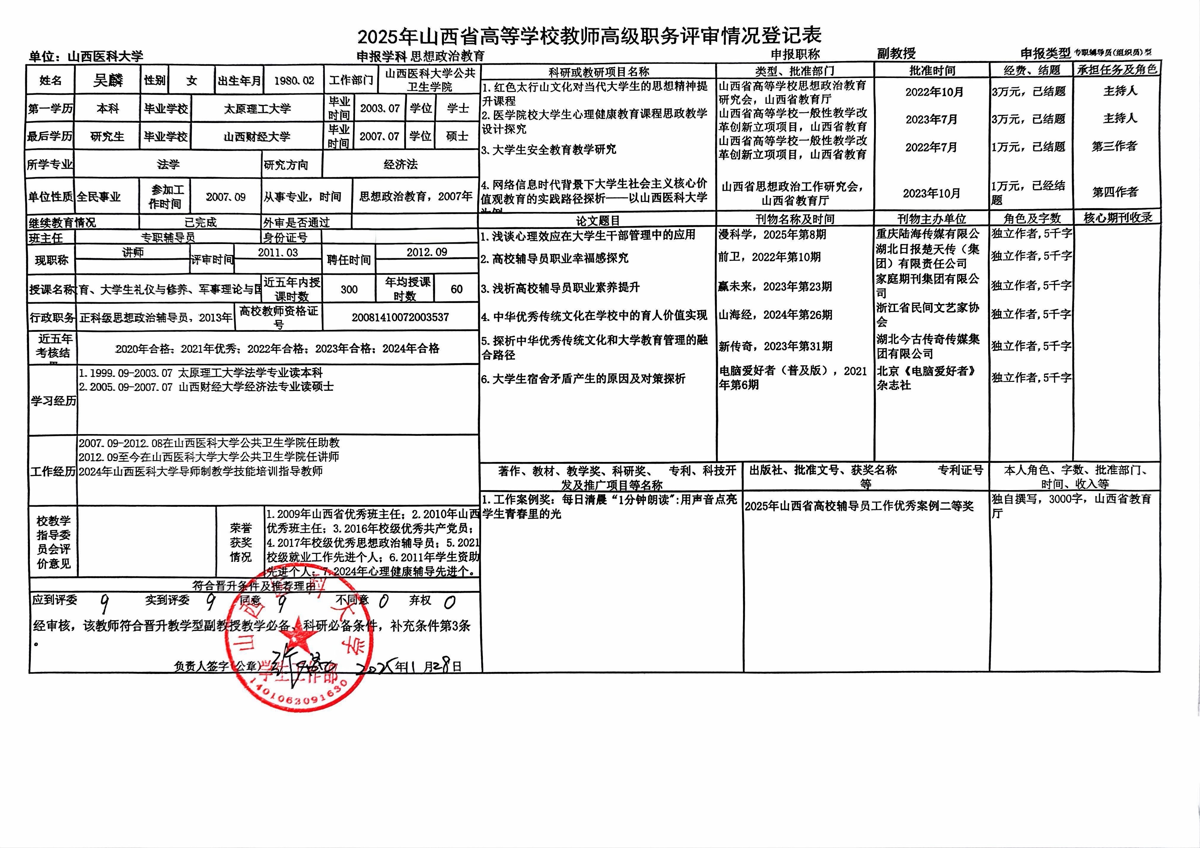 根据《山西省人力资源和社会保障厅关于印发<职称评审管理实施细则>的通知》(晋人社厅发〔2021〕28 号)、《关于做好2025 年度全省职称评审工作的通知》(晋人社厅函〔2025〕560号)、《关于开展 2025 年度全省高等学校教师高级职称评审工作的通知》(晋教师函〔2025〕52 号)、《关于开展 2025 年度全省实验系列高级职称评审工作的通知》(晋教师函〔2025〕28 号)、《万象城体育awcsport职称评审和聘任管理办法(试行)》(山医大党〔2024〕59 号)精神,经专职辅导员(组织员)型教师职称评审组评审,石璟等13人符合申报条件,同意推荐以下人员申报相应职称,现将符合条件人员情况予以公示(详见附表),公示时间为11月28日-12月5日,公示期为五个工作日。