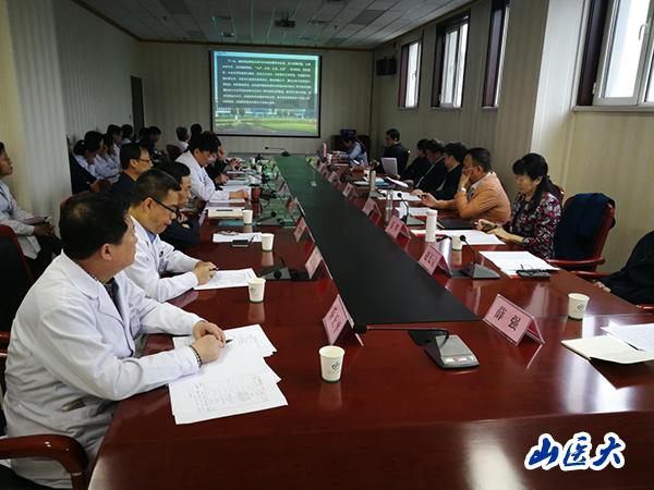 考察中,附属临汾医院苏学峰院长首先介绍了医院基本情况和发展规划,随后从医疗服务、教学情况、科学研究、文化建设、存在不足等几个方面进行了详细地汇报。医院全体院领导班子成员、临床科室负责人、职能部门负责人参加了会议。