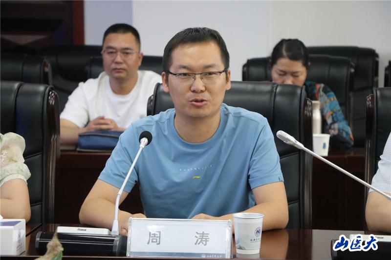 周涛介绍了阜康地区医疗卫生事业的发展现状以及医共体建设的成果与挑战。他表示,阜康市医共体总医院作为学校的教学医院,此行主要目的是希望与学校开展充分的交流与合作,通过借鉴学校在重点学科建设、专业人才培养、科学管理制度等方面的先进经验,把医院打造成医学人才培养基地和毕业就业基地,培养出更多能够留在新疆建设的人才。
